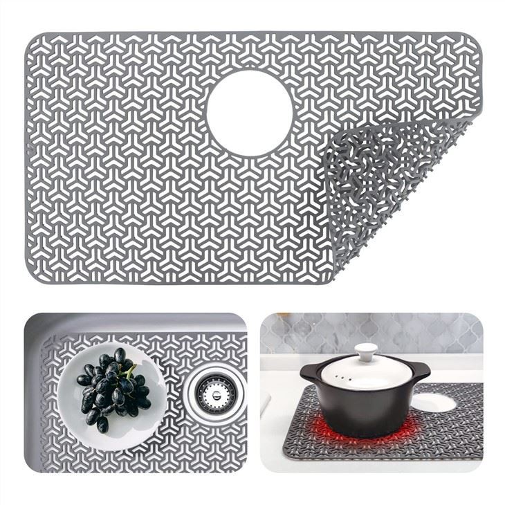 Silikoninen pesuallasmatto on taipuisa ja ruosteenesto. Se voi tehokkaasti estää hauraita astioita rikkoutumasta, jos ne putoavat vahingossa pesualtaaseen, ja välttää ruostumattoman teräksen ja keraamisten pesualtaiden naarmuuntumisen. Keittiötiskien silikonisuojat ovat kestäviä eivätkä ruostu likaamaan pesualtaan.